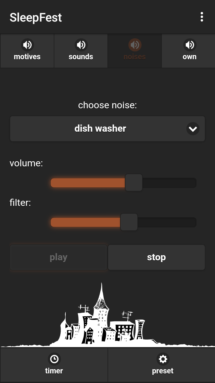 It is possible to fade out the sounds after a certain time using the timer. Start the desired tones and adjust the volume and filter.